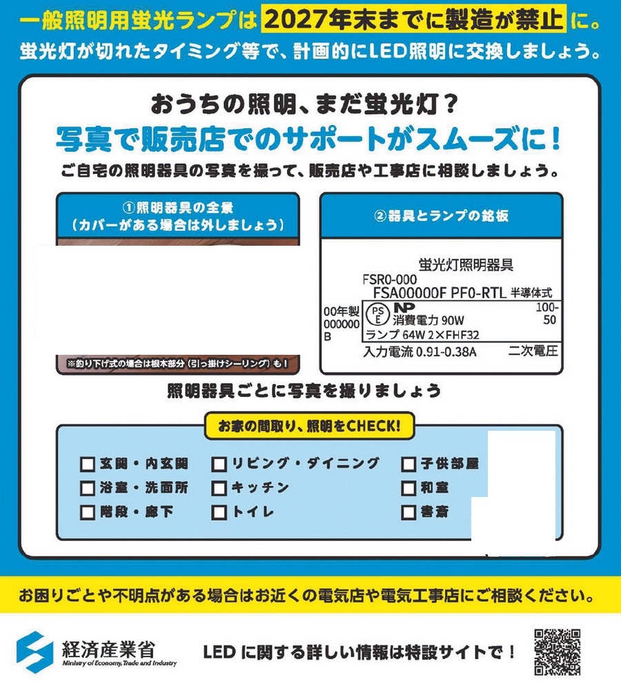 くらし おうちの蛍光灯をLEDに切り替え! 21/34 前の記事 次の記事 発行日 : 2025年12月19日 自治体名 : 愛媛県久万高原町 広報紙名 : 広報久万高原 2025年12月号 Tweet シェアする 一般照明用の蛍光ランプは2027年末までに製造・輸出入禁止になります 【ふるさと魅力発信】天体観測館
