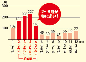 林野火災の月別出火件数(令和2年~6年の平均)