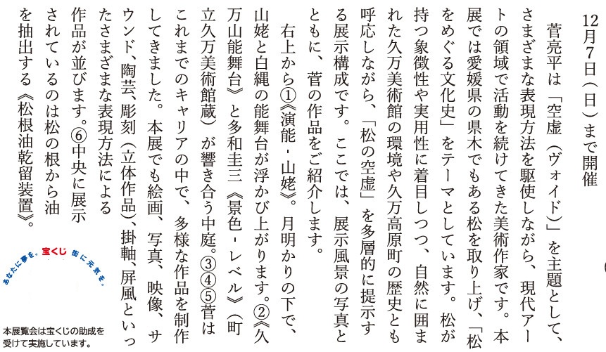 文化 町立久万美術館2025年度自主企画展 菅亮平 The Long Wait 1/31 次の記事 発行日 : 2025年11月19日 自治体名 : 愛媛県久万高原町 広報紙名 : 広報久万高原 2025年11月号 ※詳細は、本紙またはPDF版をご覧ください。 Tweet シェアする 第53回 久万林業まつり