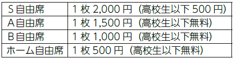 B自由席(大人および高校生以下)を取り扱っています。