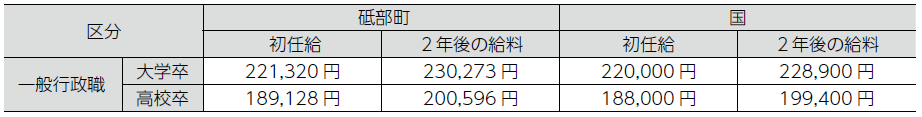 くらし 〔お知らせ〕町職員の給与の状況(1) 29/48 前の記事 次の記事 発行日 : 2025年10月01日 自治体名 : 愛媛県砥部町 広報紙名 : 広報とべ 令和7年10月号 町職員の給与は、地方公務員法の規定に基づき、毎年公表しています。 ■職員の平均給与月額、初任給などの状況(令和7年4月1日現在) (1)職員の平均年齢、平均給料月額および平均給与月額の状況 ※平均給与月額とは、給料に職員手当(期末・勤勉手当・退職手当を除く)を加えた平均月額です。 (2)職員の初任給の状況 (3)職員の経験年数別・学歴別平均給料月額の状況 Tweet シェアする 国勢調査の回答はお済みですか 〔お知らせ〕町職員の給与の状況(2)