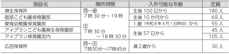 ※定員には、現在入所中の児童を含み、定員以上の申込があった場合は利用調整や抽選となります。