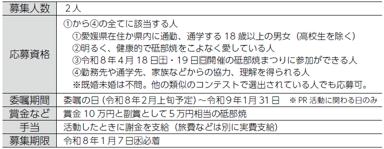 愛媛新聞社営業局企画事業部「砥部焼まつり大使募集」係