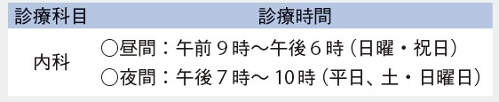 ※当センターの診療は応急措置のみです。休日や夜間に急に具合が悪くなった、中学生以上の人が受診できます。