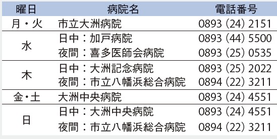 ●大洲喜多休日夜間急患センター 【電話】0893-23-1156