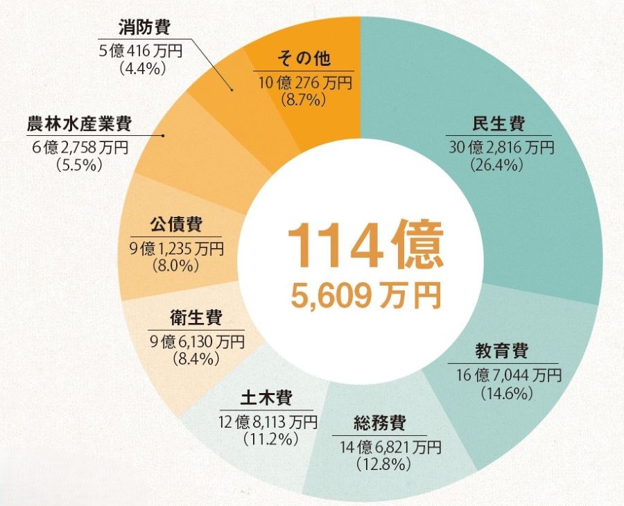 民生費……高齢者や障がい者、児童の福祉サービスの提供などに使われた費用