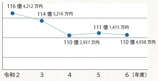 新型コロナの感染対策や物価高騰に対する経済対策事業の縮小により、総務費および民生費に占める扶助費が、5年度より2億8374万円減りました。公債費は相対関係である「財源確保の借入」と「元利償還」の計画的な財政運営により4341万円減少しています。