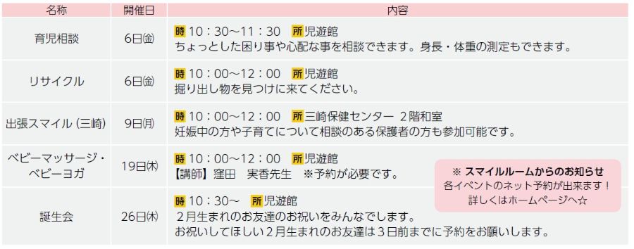 ■スマイルルーム2月の行事