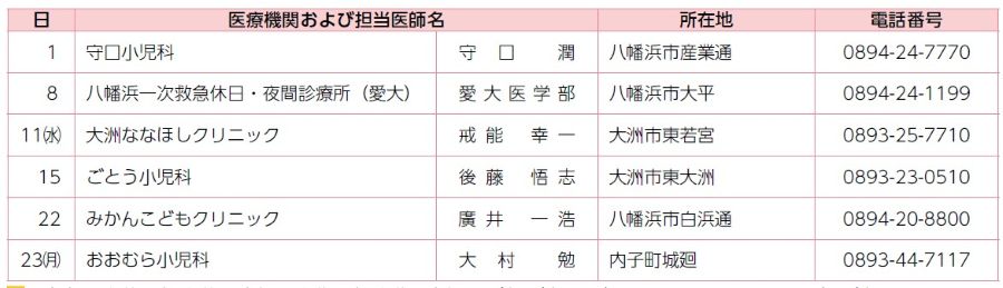 みかんこどもクリニック・守口小児科・八幡浜―次救急休日・夜間診療所