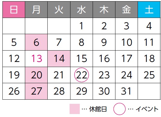 休館日:月曜日(祝日の翌平日)、年末年始、資料整理日ほか