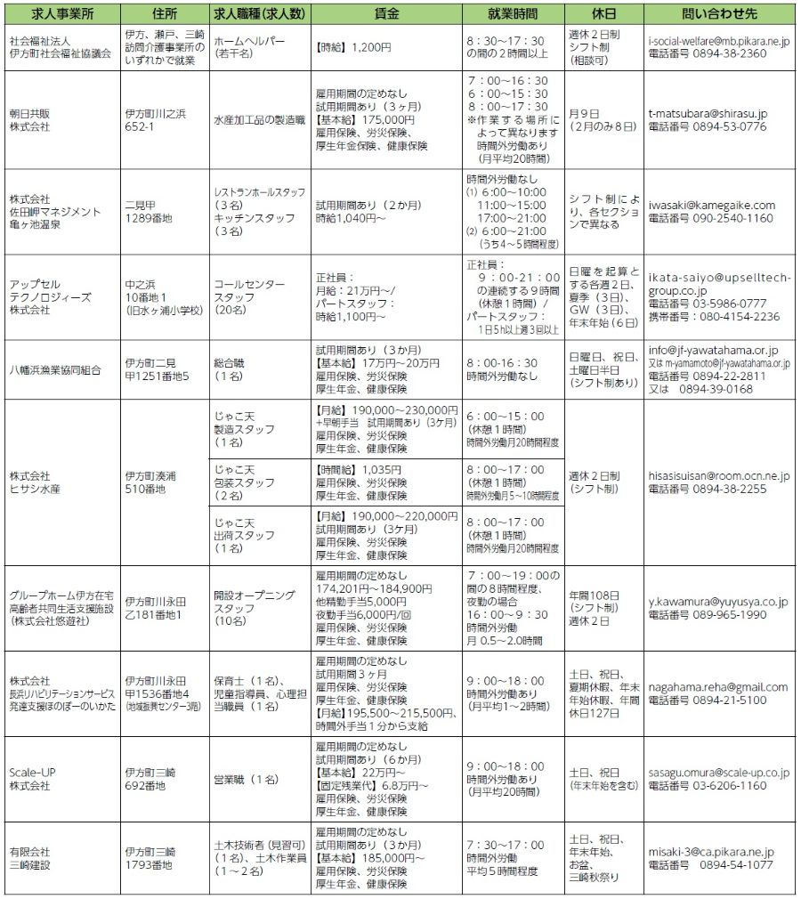 町民や伊方町への移住を考える方に広くお知らせし、町の農・水・商工業などの発展や企業立地、促進・雇用対策のため、「広報いかた」において無料の求人情報を毎月掲載します。