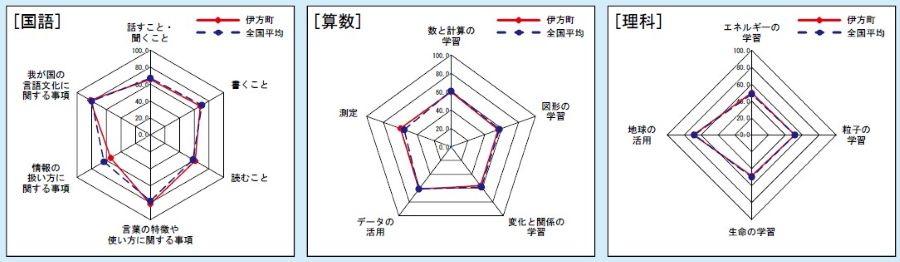 ・国語科・算数科・理科の正答率は、全国平均と同程度か若干上回っている。