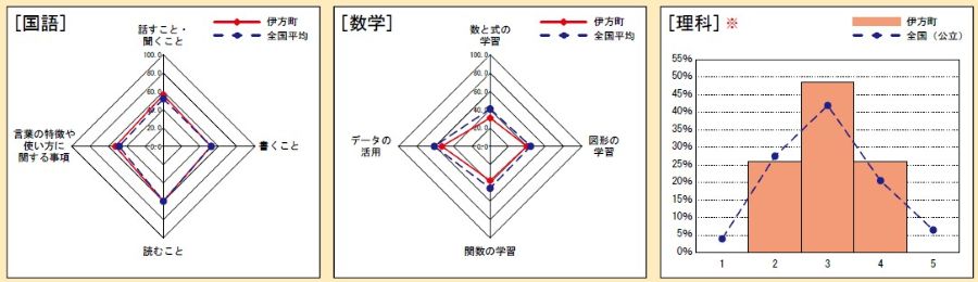※中学校理科のみ[5段階別IRTバンドにて比較]