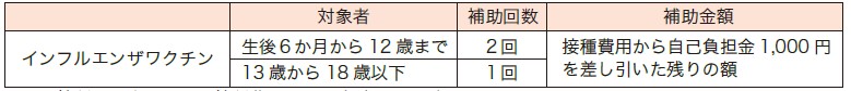 町では、インフルエンザの発症及び重症化を予防し、子育て世代の経済的負担を軽減するため、子どものインフルエンザ予防接種に関する費用を一部補助しています。