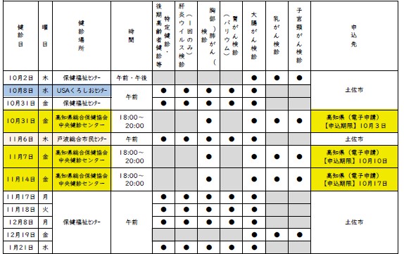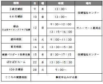 ■10月の主な保健事業日程