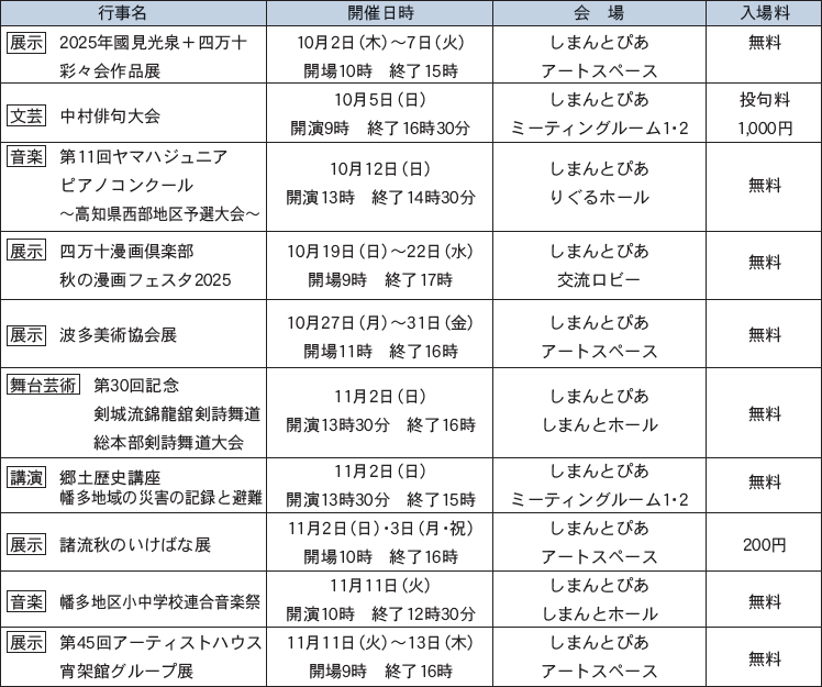 ■第1回 四万十市芸術祭のご案内(10月~11月上旬)