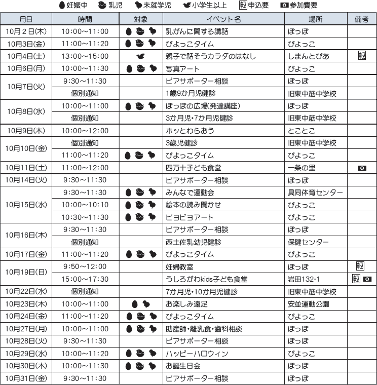 イベントについての問い合わせ・申込先は子育て応援ひろばホームページをご確認ください。