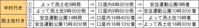 ・西土佐-会場間マイクロバス(以下の時間で運行)