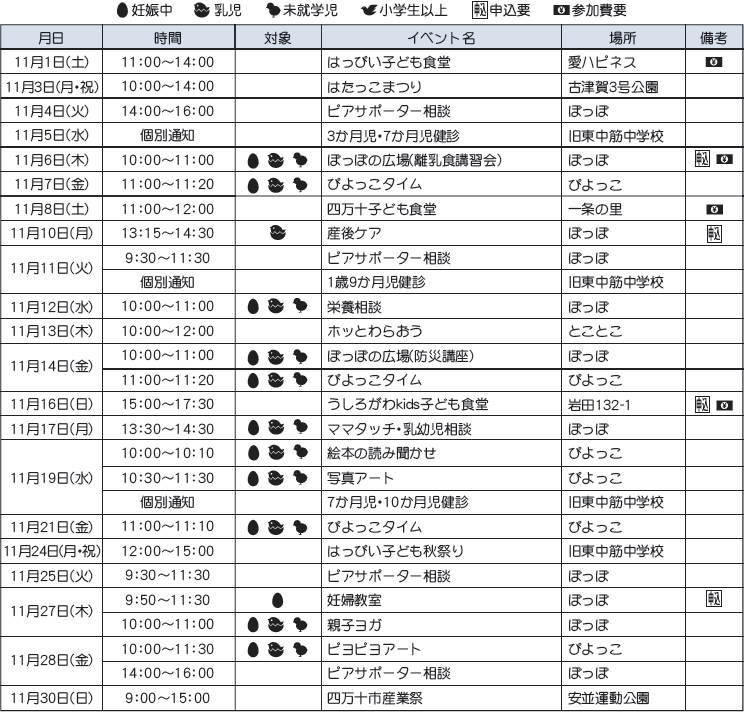 イベントについての問い合わせ・申込先は子育て応援ひろばホームページをご確認ください。