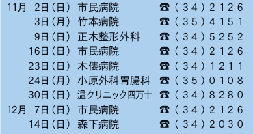 健康 当直医 42/46 前の記事 次の記事 発行日 : 2025年10月29日 自治体名 : 高知県四万十市 広報紙名 : 広報しまんと 令和7年11月号 ※当番については変更になる場合がありますので、各医療機関へ事前に電話でお問い合わせください。 ■救急車を呼ぶか病院に行くか迷ったときは… 高知家の救急医療電話(【電話】#7119)をご利用ください。 Tweet シェアする 日直指定水道業者 人のうごき