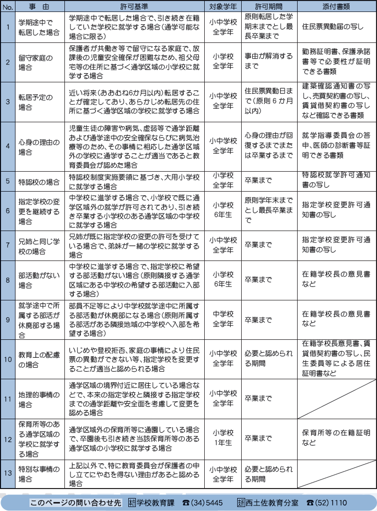 また、新たな基準として(12)「保育所等のある通学区域の学校に就学する場合」を追加しました。