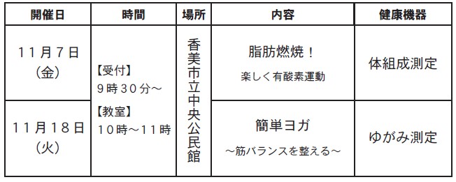 参加方法:軽い運動ができる服装で、特定健診結果を持参してください。