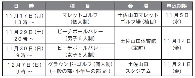参加資格:市内在住・在勤・在学の健康な方、または香美市のスポーツ団体に所属している方