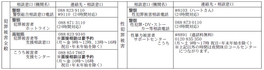 香美市は、総務課に総合的対応窓口を設置し、必要な支援を提供できる機関の情報提供などを行っていますので、ご相談ください。秘密は厳守されます。