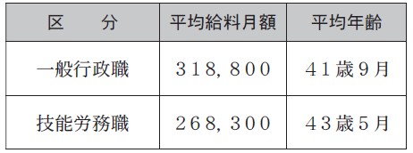 ▽平均給料月額および平均年齢の状況 (令和7年4月1日現在、単位:円)