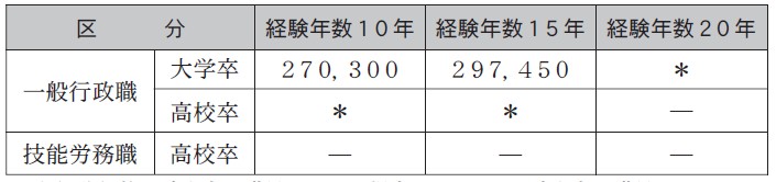 ※各経験年数に該当する職員がいない場合は「―」、該当する職員が少数の場合は、個人情報保護の観点から「*」としています。