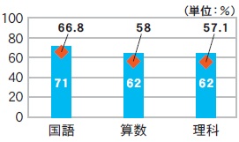 小学校は約4p程度全国平均を上回っており、中学校では全国平均同等の結果となっております。