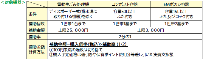 本町では、SDGsの取り組みの一環として、一般家庭から排出される生ごみの減量及び資源化を促進するとともに、ごみ問題に対する町民意識の高揚を図ることを目的とし、生ごみコンポスト容器等の購入に際して予算の範囲内で補助金を交付します。