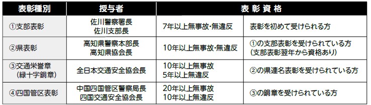 ※交通安全協会では会員を対象に、無事故・無違反の方を表彰しています。