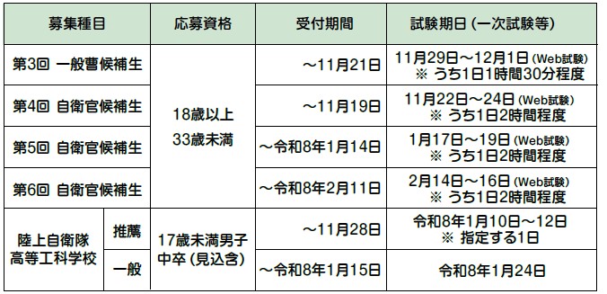 ※延期や中止になる場合がございますので、試験内容など含めてお問い合わせください。