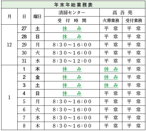 なお、受け付け業務は、年末年始も平常どおり衛生センター【電話】26-0305で受け付けします。