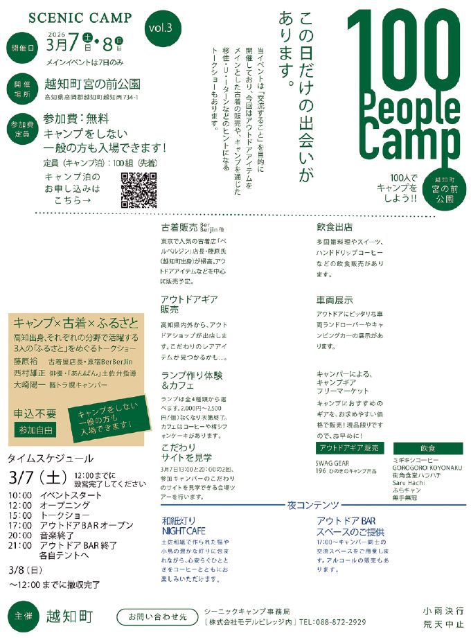 イベント 100 People Camp 100人でキャンプをしよう!! 44/46 前の記事 次の記事 記事を読み上げる 発行日 : 2026年02月01日 自治体名 : 高知県越知町 広報紙名 : 広報おち 2026年2月号 Tweet シェアする 町内の水道指定業者一覧 パタパタ通信