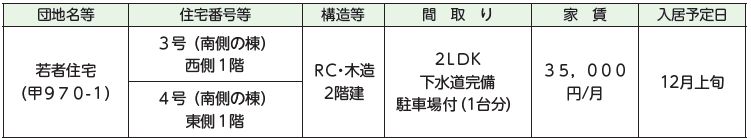 若者住宅2戸の入居者を募集します。希望される方は、下記のとおり申し込みをお願いします。
