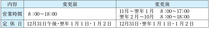 「村の駅ひだか」の営業時間及び定休日について、下記のとおり変更しています。