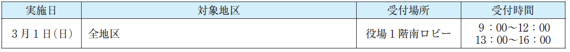 ※申告受付期間中、平日に来られない人はこの日を利用してください。平日来庁が可能な人は、できるだけ優先受付期間内の対象地区受付日等に来てください。協力をお願いします。