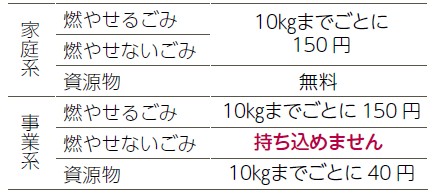 ※1回の持ち込み量が110kg以上の場合は、最初の10kgから10kgごとに100円。120kgの時は1,200円になります