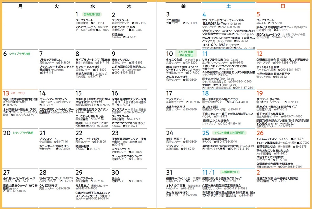 くらし 10月イベントカレンダー 12/22 前の記事 次の記事 発行日 : 2025年10月01日 自治体名 : 福岡県久留米市 広報紙名 : 広報くるめ 令和7年10月1日号 イベントをお知らせします。久留米広域連携中枢都市圏や筑後川流域クロスロード協議会を構成する市町のイベントも掲載 ◎詳細は「久留米市公式ホームページ」で検索 Tweet シェアする 撮っておきNews(ニュース) ちょいと行ってみらんね
