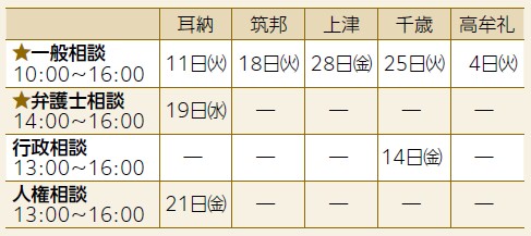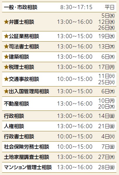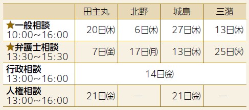 ★印の付いた相談は申し込みが必要。先着順で、申込開始は10月8日(水)8時30分。相談日を指定できる、無料のチケット弁護士相談も行っています。