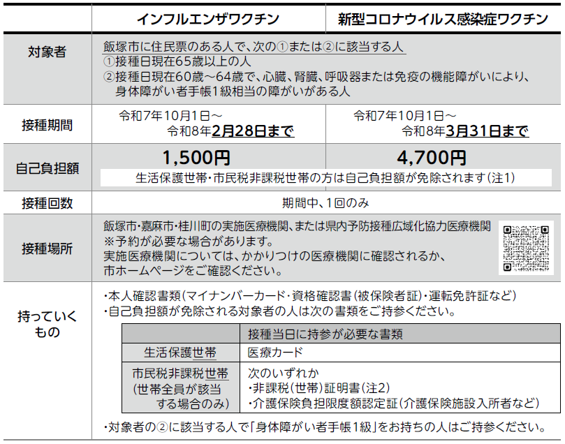 感染すると重症化しやすい65歳以上の高齢者の方は、インフルエンザワクチンと新型コロナウイルス感染症ワクチンを一部公費負担で接種することができます。