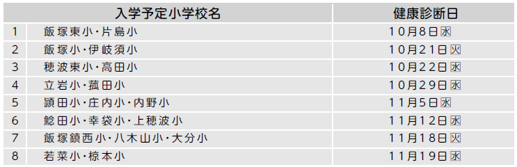 ※対象者には9月上旬に「就学時健康診断通知書」を発送しています。届いてない場合はお問合せください(当日受診できない場合は、事前にご連絡ください)。