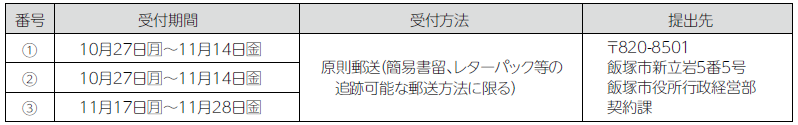 ※市外物品・役務業者においては10月初旬から受付を行います。