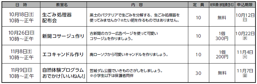 申込み・問合せ:飯塚市リサイクルプラザ エコ工房