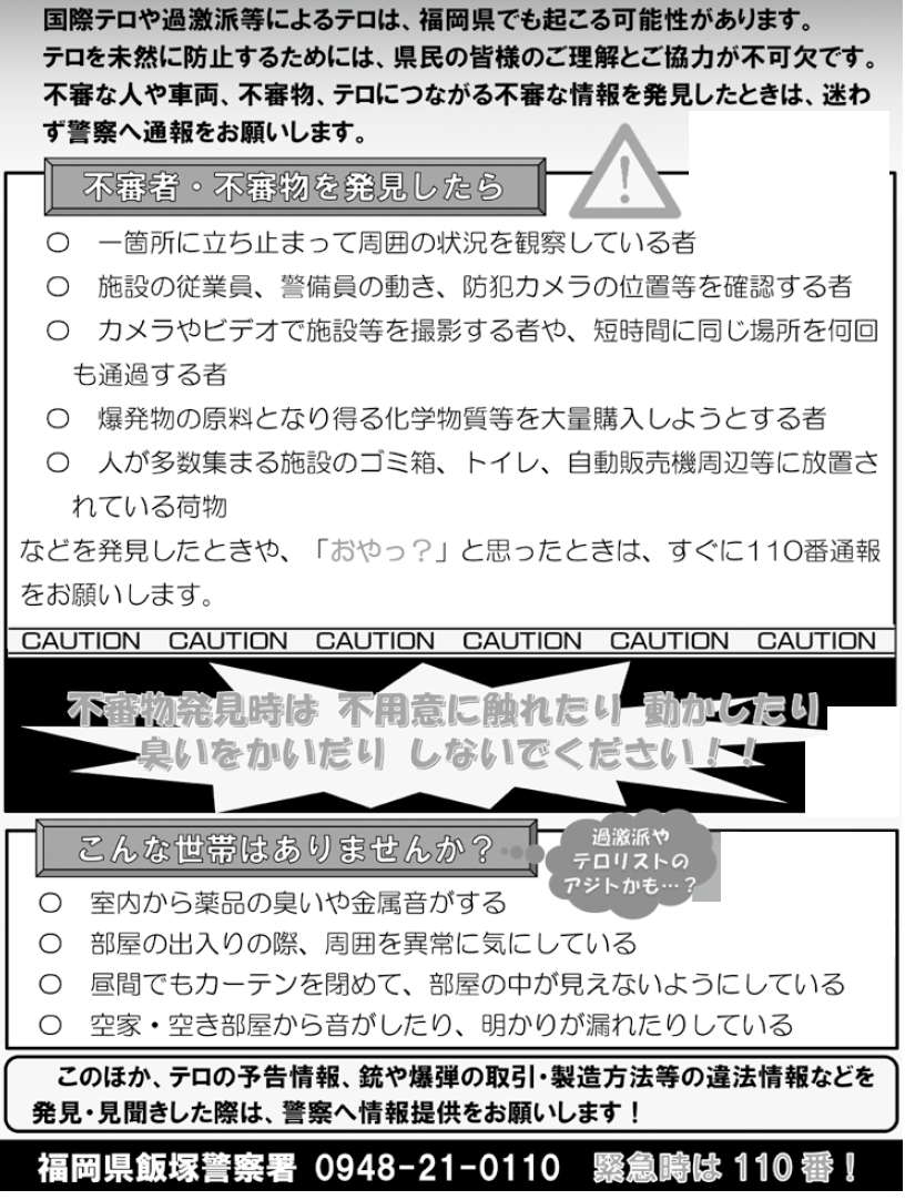 くらし テロの未然防止にご協力を! 30/35 前の記事 次の記事 発行日 : 2025年11月01日 自治体名 : 福岡県飯塚市 広報紙名 : 広報いいづか 令和7年11月号 Tweet シェアする 飯塚オート開催日程11月 まちの話題(1)