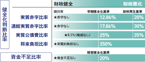 ◆国が全国一律で定めている自治体の財政状況を表す健全化判断比率は基準値以下