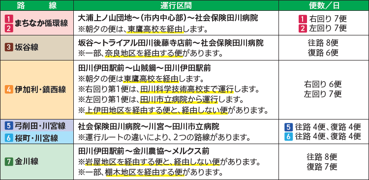 ※詳しい路線は、4ページの「コミュニティバス新路線図」で確認してください。