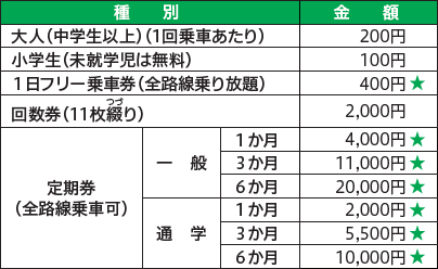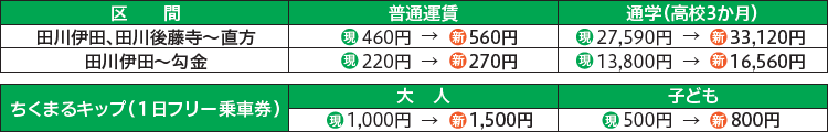 ※新運賃は予定額です。その他区間の運賃など、詳しくは問い合わせください。